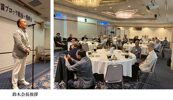 中四国ブロック代表幹事の村中勉からの挨拶では、5年ぶりで会員の皆様と元気で再会できたことの喜びと、中四国ブロックの会員数が340名になったことなどの報告がありました。