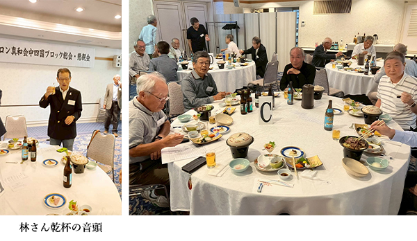 総会・懇親会は、真和会会長の明致親吾様をお迎えして、中四国ブロック会員を含め 46名、オプション行事のみの参加も含めると総勢49名の参加となりました。