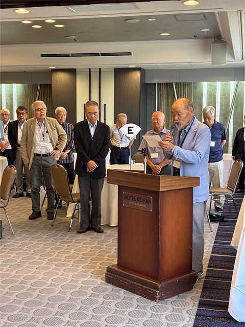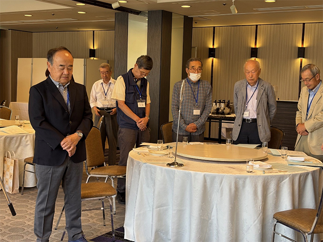 式次第通り11時45分に総会をスタート、議事に先立ち、まず昨年の総会以来、当日までにご他界された京阪神ブロックの会員の方々を改めてご紹介し、全員で黙とうを捧げました。