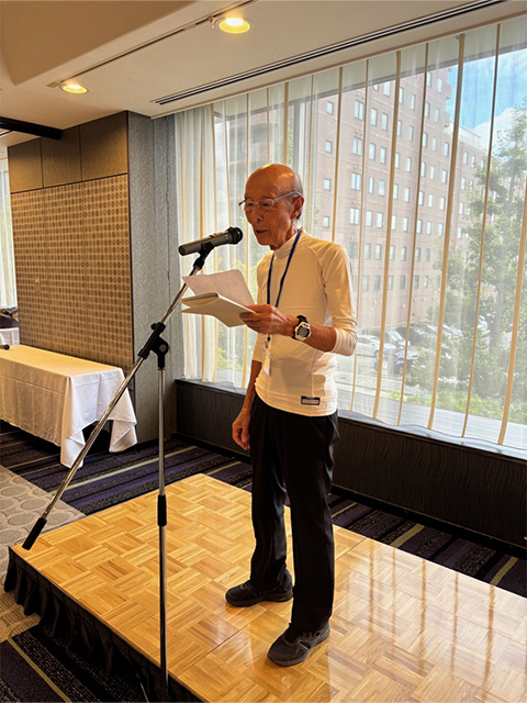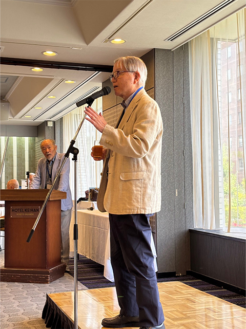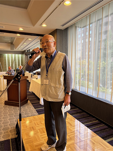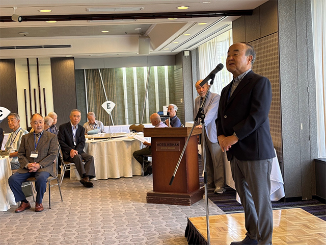 続いていよいよ同会場での懇親会に移り、まず、大先輩である岩本俊輔元真和会会長のご発声で真和会のますますの発展と会員の皆様のご健勝を祈念する素晴らしい乾杯の音頭とともにスタートしました。